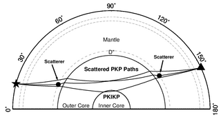 Figure 1. (a) Ray-paths of PKIKP and scattered PKP waves. The PKP precursors are scattered PKP waves generated by the seismic scatterers (black dots) in the lower mantle beneath the source or receiver. (b) Ray-paths of S and ScS waves. (Image by SUN Xinlei)