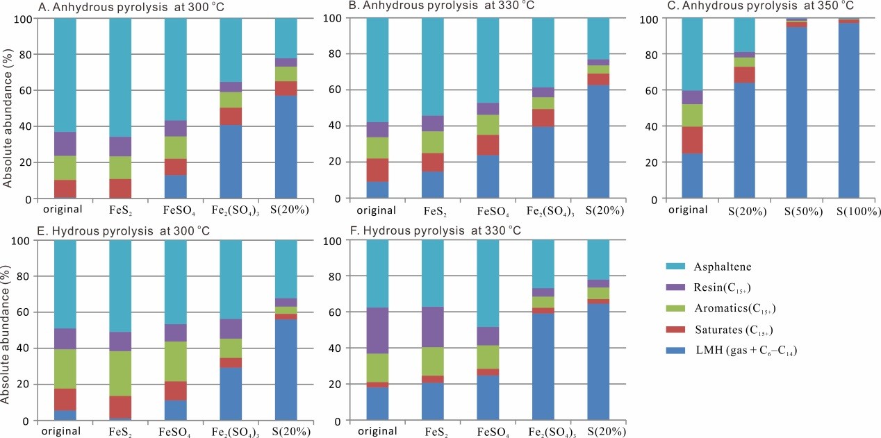 The effect of sulfur compounds on the evolution of hydrocarbons and biomarkers in source rocks has been found by a Chinese team led by Professor Ansong Geng and his team members Dr. Liangliang Wu and Sir. Xinyan Fang. Sulfur and sulfur-bearing minerals widely occur in marine source rocks, due to the abundance of SO2- 4 in seawater. Although sulfur and sulfur-bearing minerals are minor constituents of most sediments, they may still significantly influence the thermal evolution of organic matter (OM) in sediments and petroleum reservoirs. For example, the reactions occurring between S0 (elemental sulfur) and OM may lead to sulfur incorporation, the formation of unsaturated organic compounds (e.g., aromatics) from alicyclic saturated hydrocarbons, and the degradation of biomarkers. The roles of sulfur and sulfur-bearing minerals in the generation and evolution of sedimentary organic matter (OM) have been of interest to organic geochemists for decades. However, most previous studies have focused on the pyrolysis behaviors of fossil fuels or single organic compounds in the presence of S-species. Few studies have looked at their effects on specific biomarkers persisted in crude oils and/or sedimentary organic matter due to stable structures. Biomarkers are widely used in oil studies to help evaluate thermal maturity assessments, organofacies studies, and oil-oil/oil-source rock correlations and the degrees of oil source mixings. Understanding the interacting effects of organic matter inputs, mineral composition, and thermal maturity on the evolution of biomarkers is important to most geochemical evaluations.