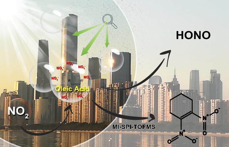 Fatty acids are ubiquitous constituents of grime on urban and indoor surfaces, and they represent important surfactants on organic aerosol particles in the atmosphere. Deng et al. (2021) assessed the heterogeneous processing of NO2 on films consisting of pure oleic acid (OA), or a mixture of OA and representative salts for urban grime and aerosol particles, namely Na2SO4 and NaNO3. The uptake process of NO2 on OA gives HONO as reaction product, and the highest HONO production was observed upon heterogeneous reaction of NO2 with OA in the presence of nitrate (NO3-) ions. The formation of gaseous nitroaromatic compounds was also enhanced in the presence of NO3- ions upon light-induced heterogeneous processing of NO2 with OA as revealed by membrane inlet single-photon ionization time-of-flight mass spectrometry (MI-SPI-TOFMS). Considering that fatty acids are ubiquitous surfactants in the atmospheric particles and on urban and indoor grime, the obtained results suggest that fatty acids can contribute to urban- and indoor air pollution through heterogeneous conversion of NO2 into N-containing organic compounds including nitrous acid (HONO) and brown carbon compounds.
