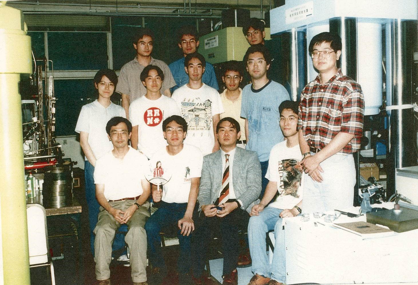 Takahashi (front row, third from the left) builds his research team and laboratory at Tokyo Tech.