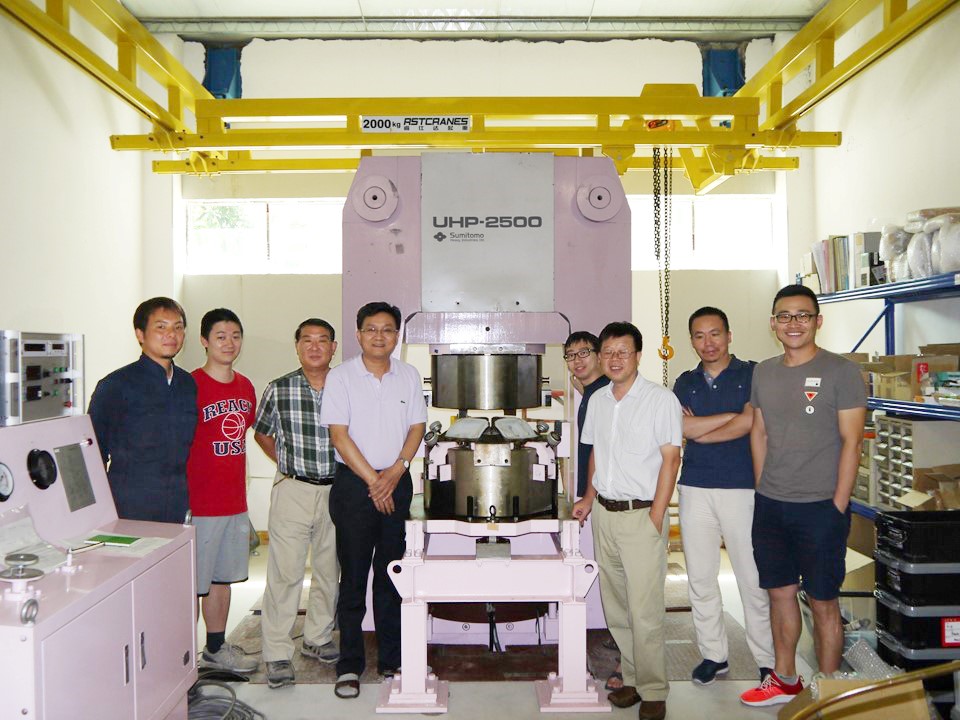 Takahashi finds a home for his multi-anvil press “Sakura” at GIG (Prof. Yigang Xu, fourth from the left).